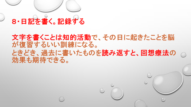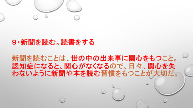 久保田会長から開会あいさつの中で、「認知症を防ぐ」15の習慣についてシリーズ4回目のお話しがありました。