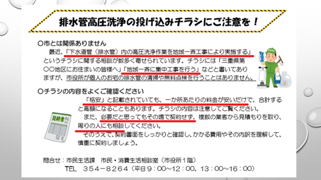 2・排水管高圧洗浄の投げ込みチラシにご注意を!
