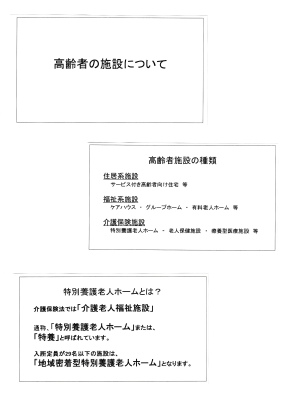 今日はハピネスやさとさんにお越し頂き「高齢者施設の利用」についてお話を戴きました。