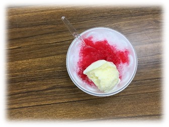 おやつはアイスクリーム入りのかき氷、美味しく戴きました。