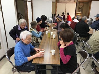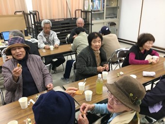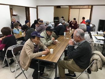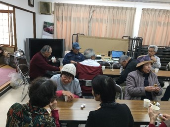 内容・・・(会長の話・わいわいコーラス・わいわいなぞなぞ・いきいき百歳体操・わいわいおしゃべりなど)