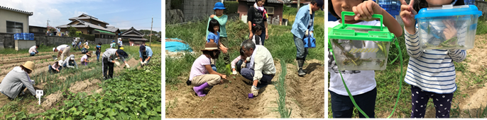 センター北の水路でスクミリンゴガイ(俗にいうジャンボタニシ)の駆除をしてから畑に駆けつけてくれた家族もみえました。ありがとうございました。