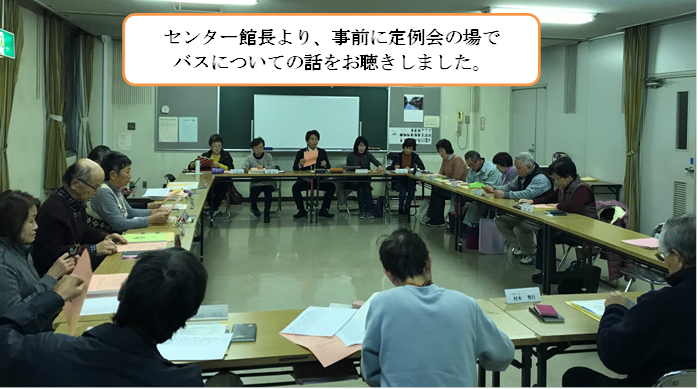 館長を始め、センターの方々、貴重な機会を作っていただき、ありがとうございました。今後も私たち民児協では、地域の重要課題である「高齢者の移動手段の確保」を真剣に考えていきたいと思います。