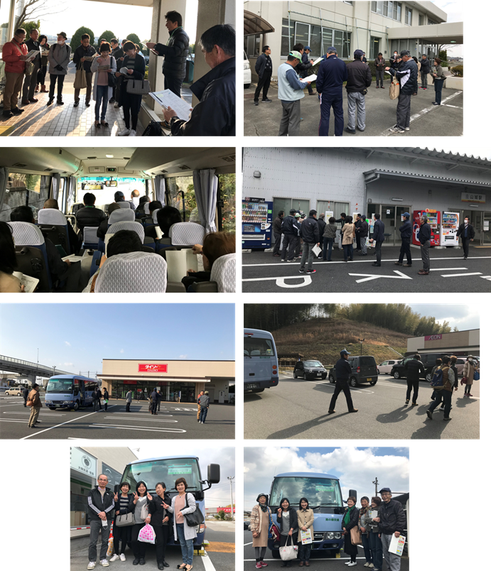 走行実験には、民児協の他に、連合自治会、まちづくり構想実行委員会、まちづくり委員会、ハピネスやさとの方々も参加し、午前(7:30~)と午後(13:30~)の2便にて行われました。