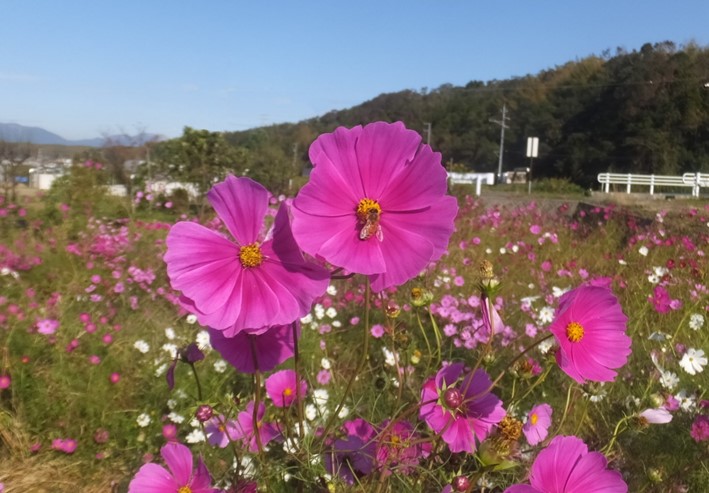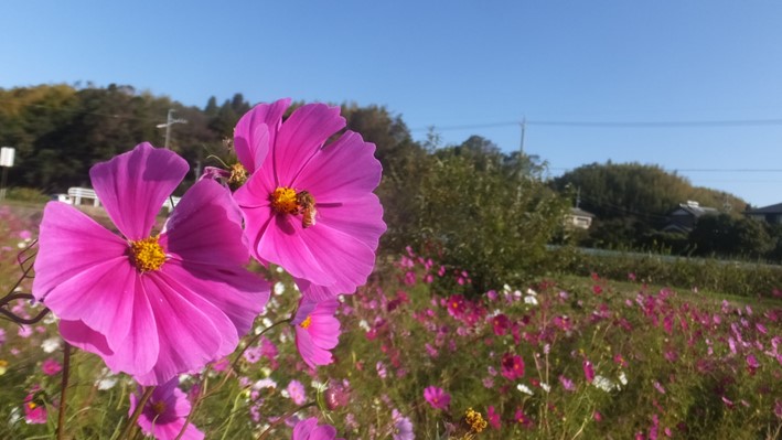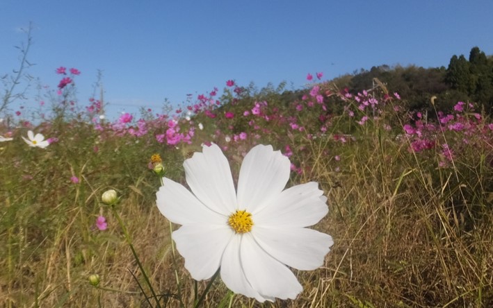 散歩のお供をした愛犬シロちゃんの目にコスモスはどのように見えたのでしょう。
