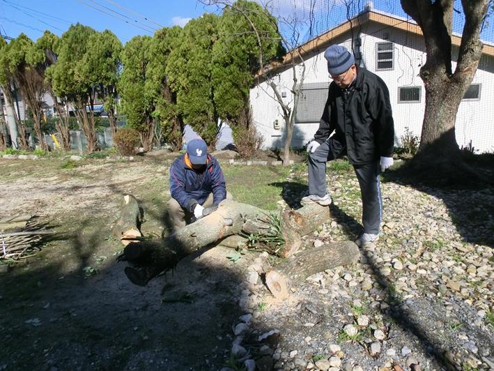 平成28年12月15日久保田会長はじめ多くのボランティアの皆さまにより,大きくなりこども広場の日当たりを悪くしているクスノキの剪定作業が行われました。