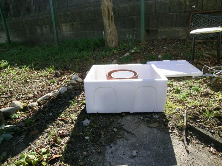 ご提供いただけます花の苗や球根などがありましたら、こども広場に備え付けた善意の発泡スチロールの箱(写真)に入れて頂くか、ボランティア活動をされている方に直接お渡し下さい。