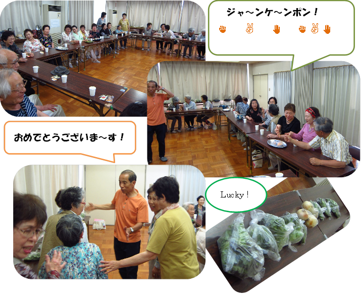 ジャンケン大会では、今日も新鮮野菜のプレゼント。
