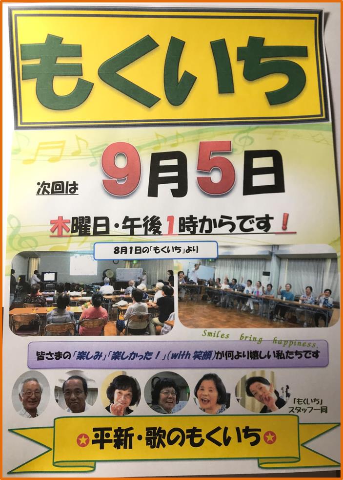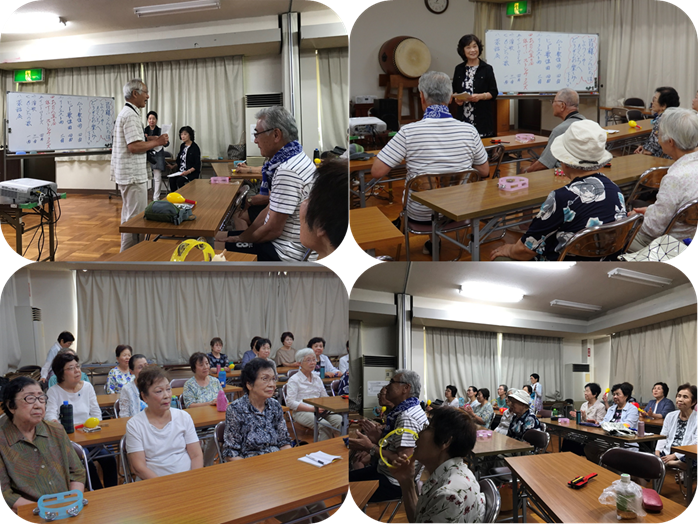 8月1日(木)午後1時から3時20分まで、私は平津新町公民館2階ホールにいました。楽しそうな歌声、笑い声、会話、笑顔をたくさん見ました!👀 聞いてきました!👂