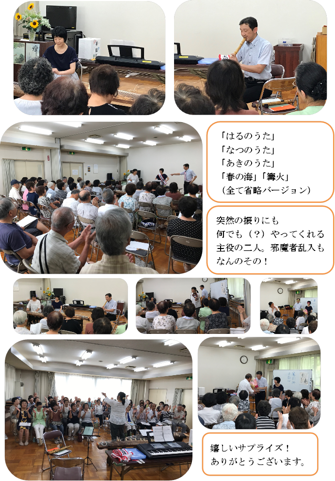 8月12日(月)㊗の童謡サークルは、たくさんの方々の笑顔にお会いすることが出来ました。暑さ厳しい中、お越しいただき、本当にありがとうございました。