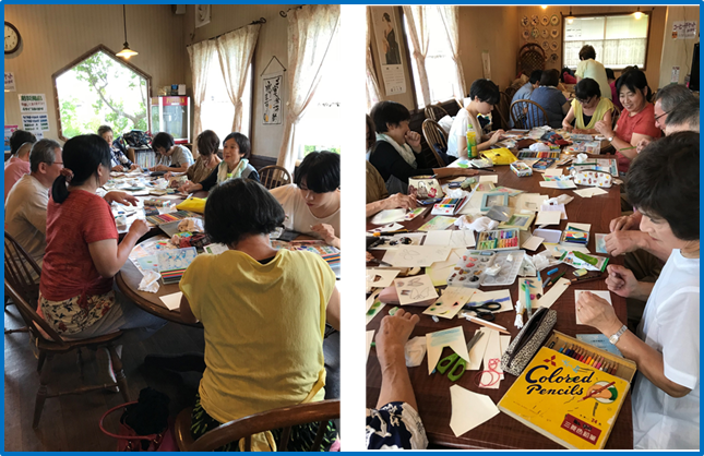 8月26日(日)13:30より「喫茶 聖」にて「虹の会 絵画教室」が開催され、私たち民生委員児童委員も10名参加しました。講師は八郷民児協の五十嵐会長です。