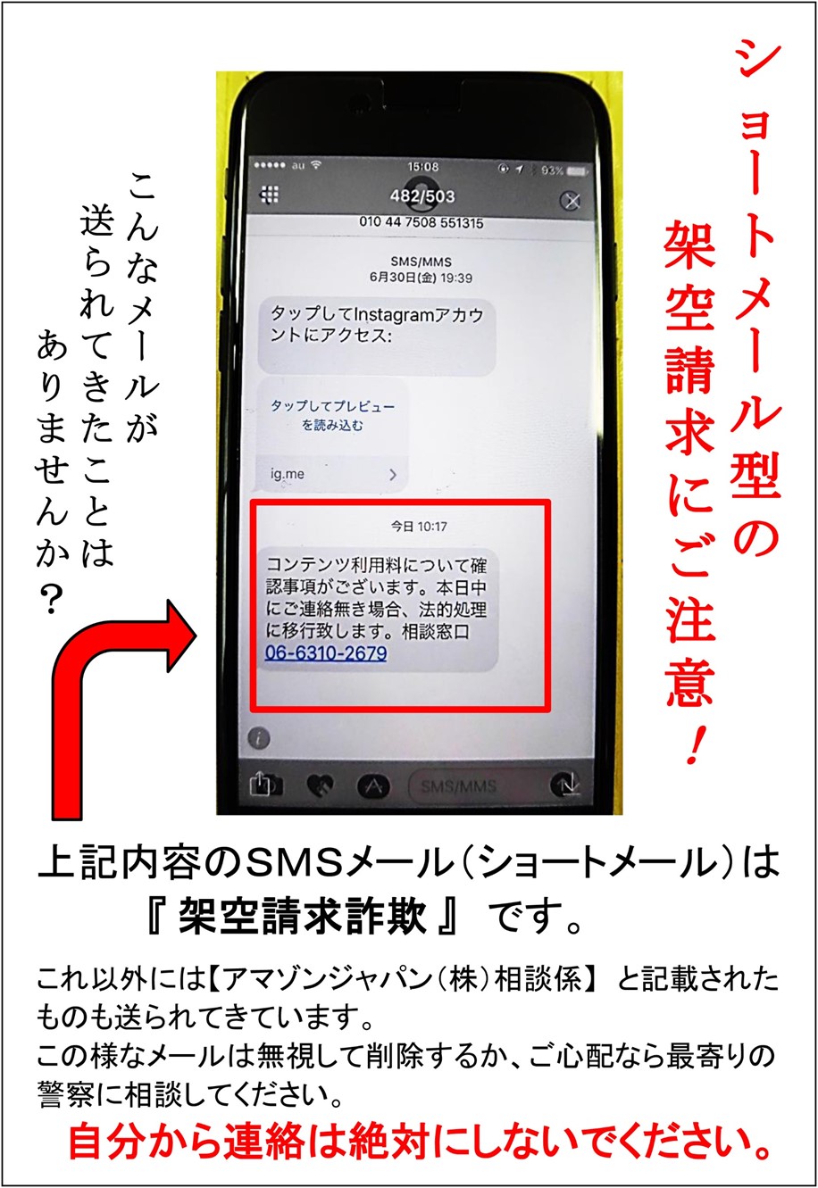 特殊詐欺に注意してください! 本年8月29日から翌月12日までの間、50歳代男性の携帯電話にアマゾンサポー 被害額合計511万円。 |