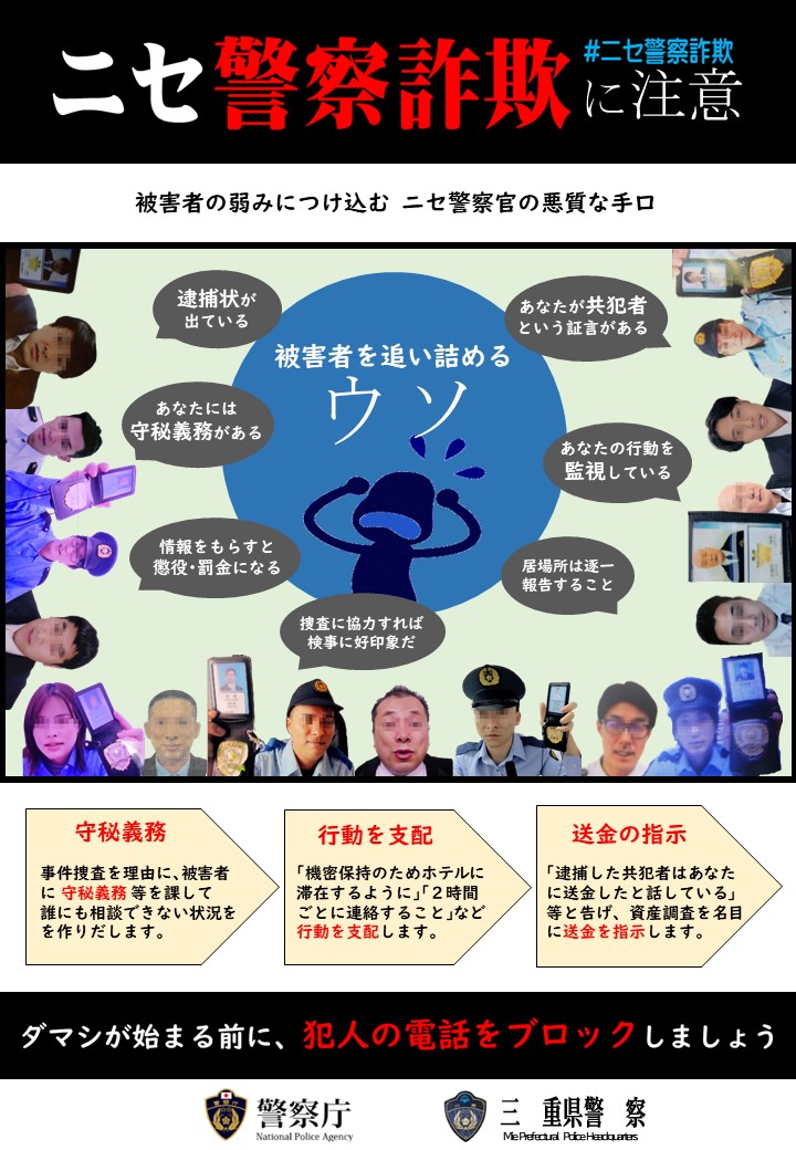 直ちに通話を中断し、四日市北警察署まで通報連絡をお願いします