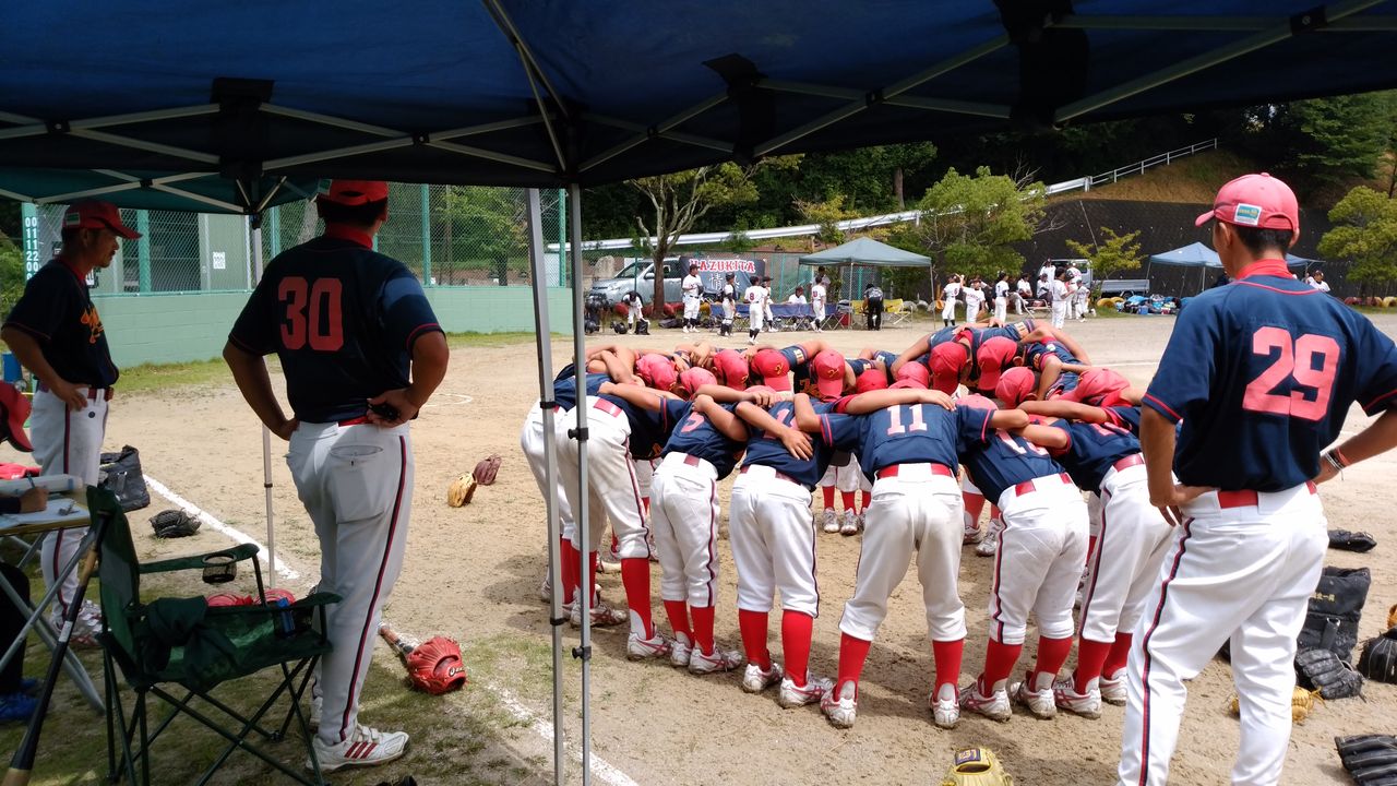 5回、四球とエラーで出塁し、2番K南がしっかり送りバントを決め、3番T也が左中間にスリーランホームラン。その後も四球とヒットで一気に計7得点。