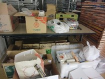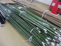 こいのぼりの下絵を張る枠、今年も40組、こいのぼりをつける竹竿には名前を書いていただくための白いテープを張り、そしてペンキを調合して赤・青・黄・など作りました。