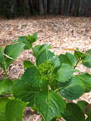| アジサイプロムナード 黄変した竹の葉 | まだ蕾 |