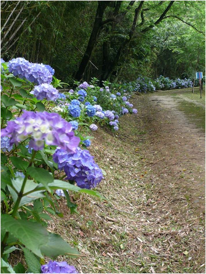 H22年この頃になると「アジサイプロムナード」もきれいに咲いて来ました。その性かこの道をウォーキングする人をよく見かけるようになりました。