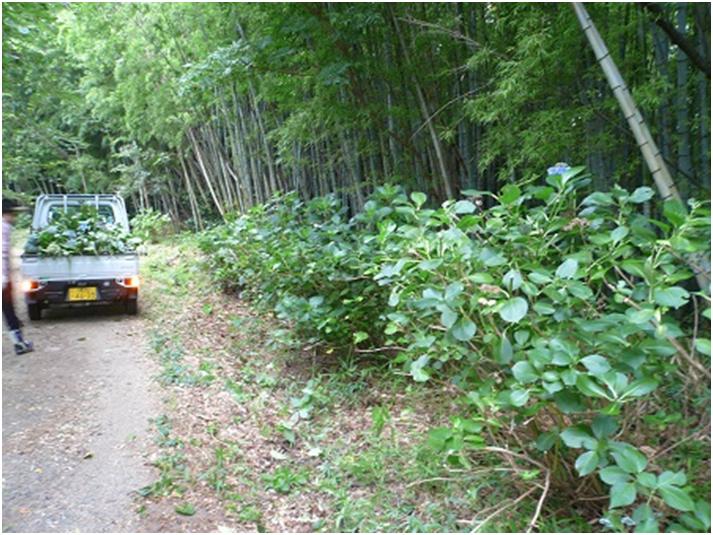 「アジサイプロムナード」もきれいに立派な花が咲いた後に大きく刈り込みをしました。