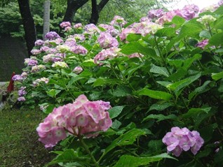 いつもコメントありがとうございます。きっとこの雨でいっそう美しく咲いている事と思います。さて、テニスコート横のアジサイですがあそこは、一番最初に移植したもので移植した時から水に関しては大変だったことを思い出します。下の水道からホースに穴をあけ、アジサイの間に這わして水を与えた事、一日に何回か当番制で水やりをした事・・・・アジサイの種類にも問題があったかも、等々簡易な考えで定植してしまったのが間違いだったかもしれません。未だに一番気になっているところです。が、ここまでになってきていますのでもう少し様子を見たいと思っています。