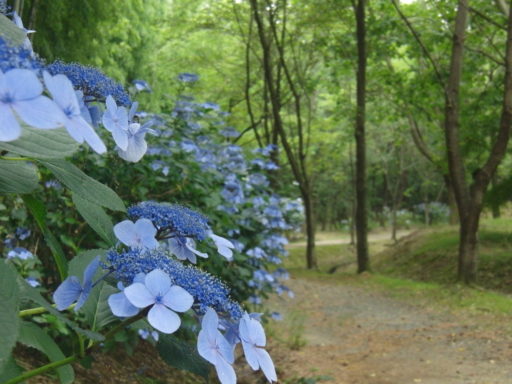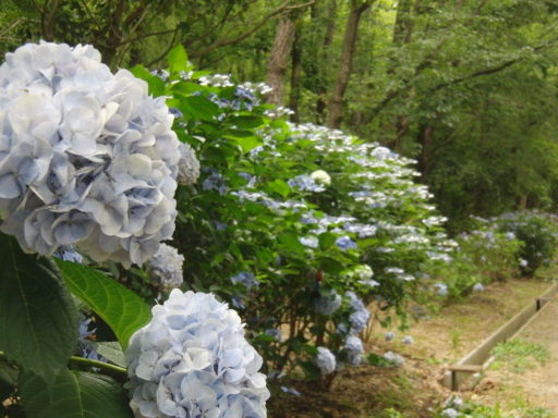 アジサイプロムナードのアジサイはまだまだ、きれいです。真っ白だったのはだんだんと薄紫に変わってきました。