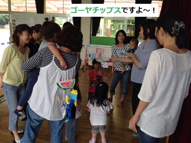 「園で採れたゴーヤチップスですよ。」