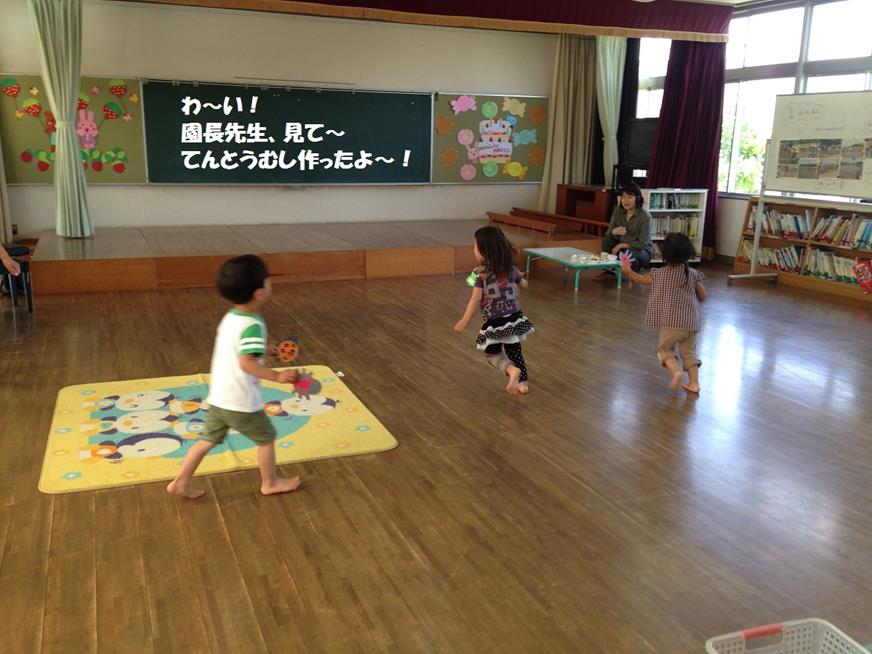 「てんとうむし」「ピョンピョンかえる」の工作、4・5月のお誕生日会、避難訓練などがありました。
