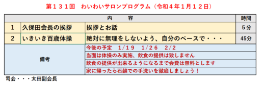 2022年1月12日(水)第131回わいわいサロンを開催しました。