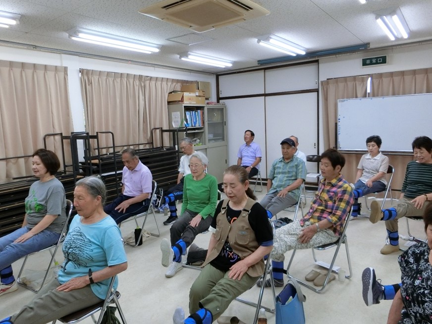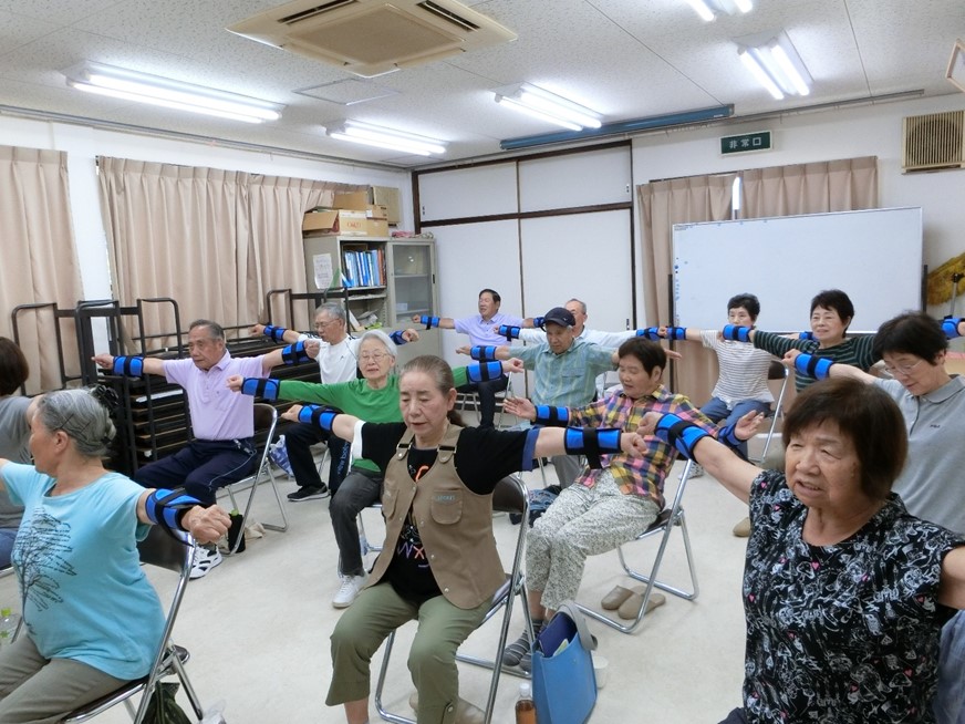 冒頭、久保田会長の挨拶のあと一回目の百歳体操を実践しました。
