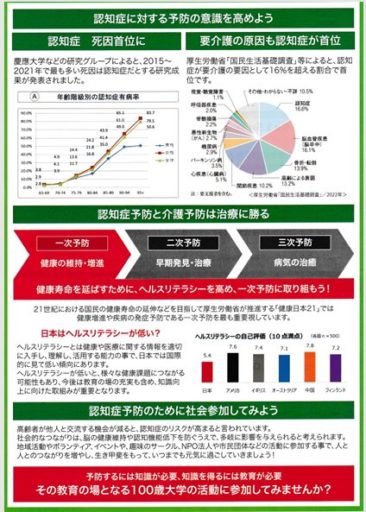 本日は下記資料に基づき「認知症に対する予防の意識を高めよう」というお話でした。