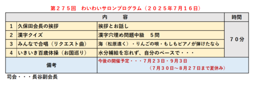 休み明けは9月3日からわいわいサロンスタートです。