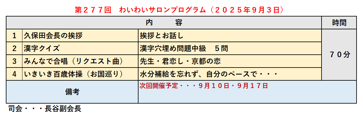 長かったわいわいサロンの夏休みも終わりましたが、暑さは続いています。