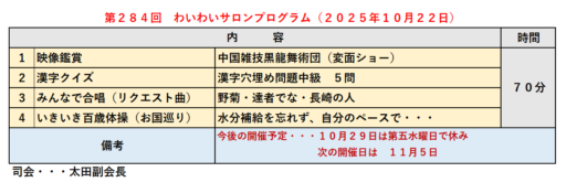 10月29日(水)は第5水曜日のためサロンはお休みです。