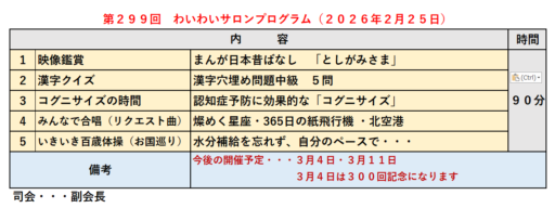 3月4日は、わいわいサロン300回記念の特別企画があります。