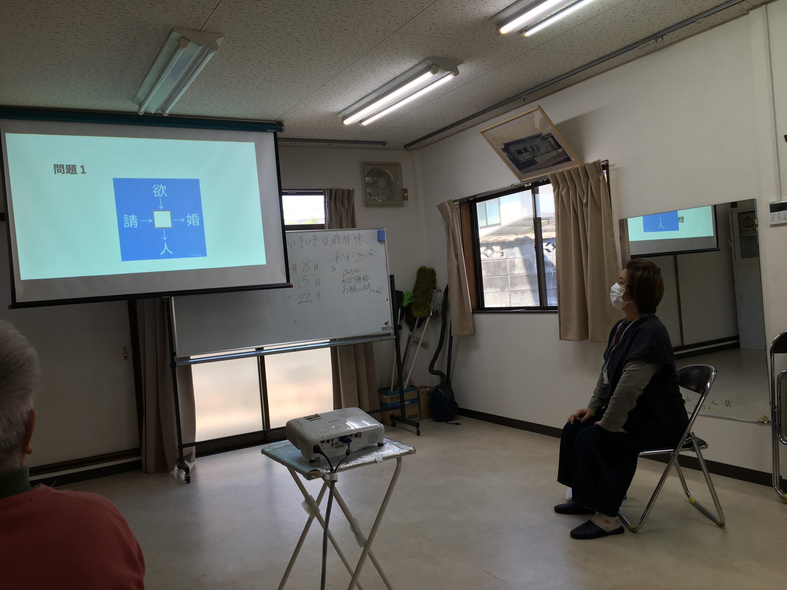 今日もコグニサイズ映像制作のOさんのお話と、その映像を見ながらコグニサイズを実施しました。 今日の内容は先週同様足踏みをしながら替え歌に挑戦しました。