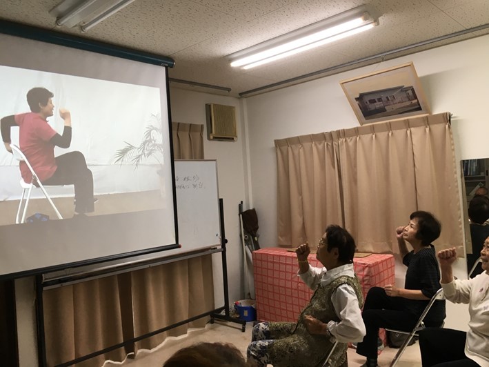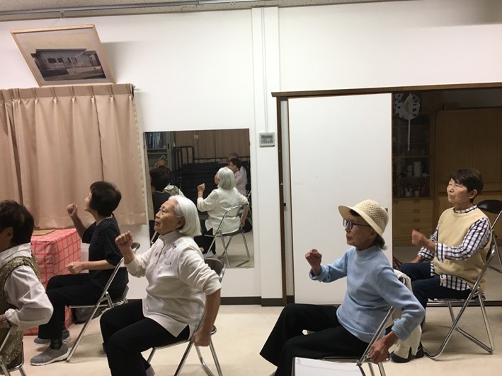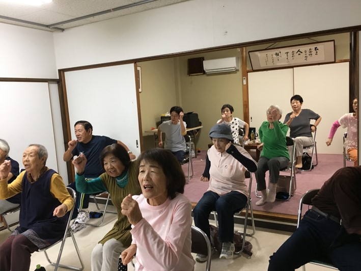 体操終了後はBGMを聴きながら恒例のおしゃべりの時間。