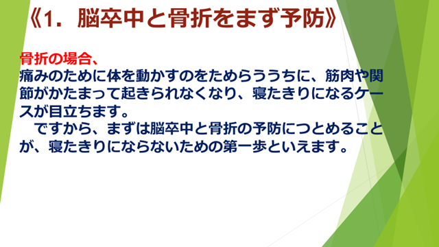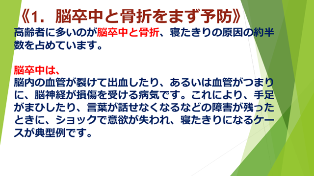 今日は「脳卒中と骨折をまず予防」するについてです。