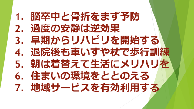 新シリーズのタイトルは「寝たきりにならない為の七つの方策」、今日から7回シリーズでお話し戴きます。