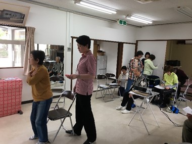今日は体力測定も終わりスッキリした気持ちで土田先生フルバージョンビデオによりいきいき百歳体操を実施しました。