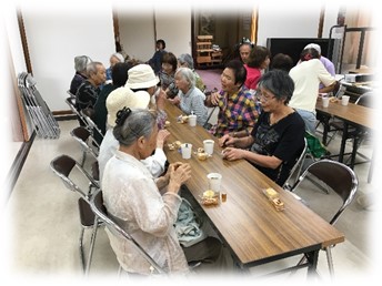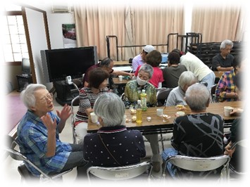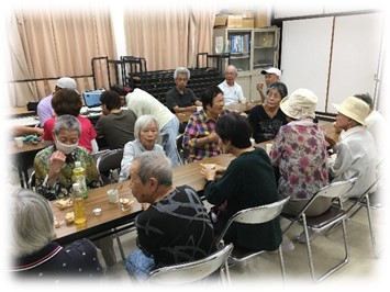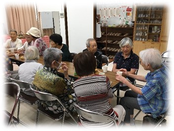 (会長のお話し・いきいき百歳体操・ハピネスやさとさんのお話し・わいわいおしゃべりなど)