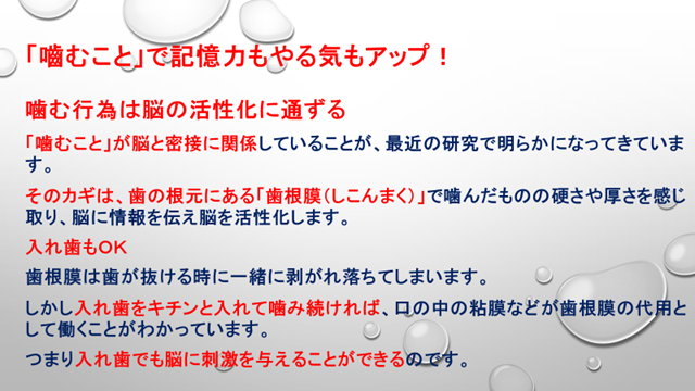 今日の具体的テーマは、睡眠をキチンととる・香りを楽しむ習慣をつける・噛むことの大切さ・聴力をキープすることでした。