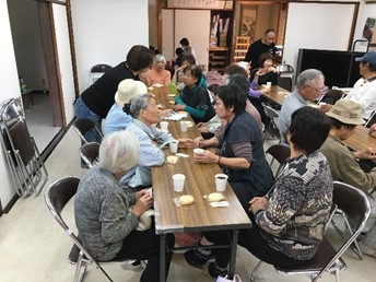 懐かしい数々の叙情曲を聴きながらのおしゃべりはコーヒーとお菓子付き、笑顔が絶えないおしゃべりの時間でした。
