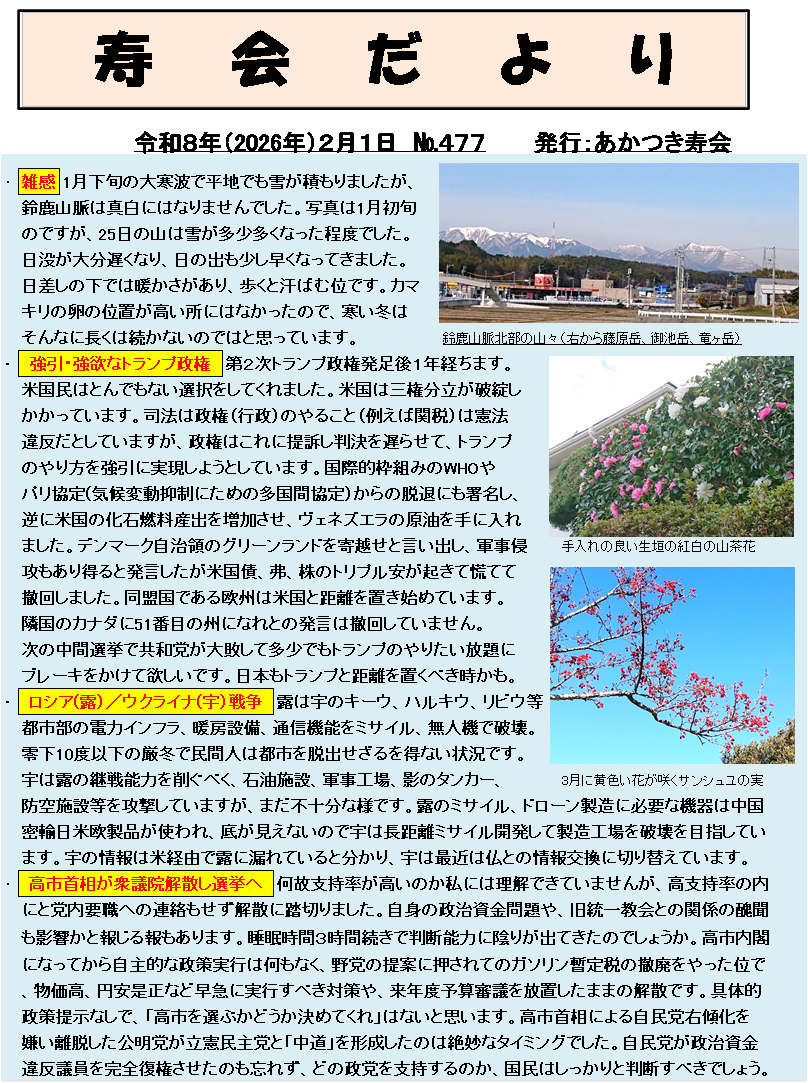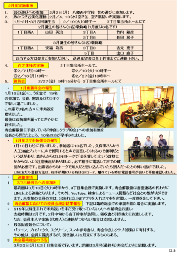寿会最後の新年会の様子(本文記事参照ください)をご覧ください。