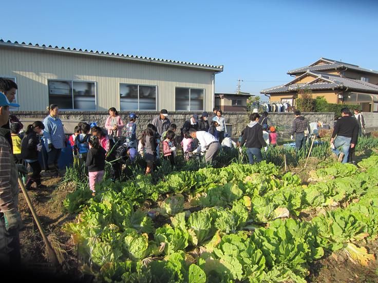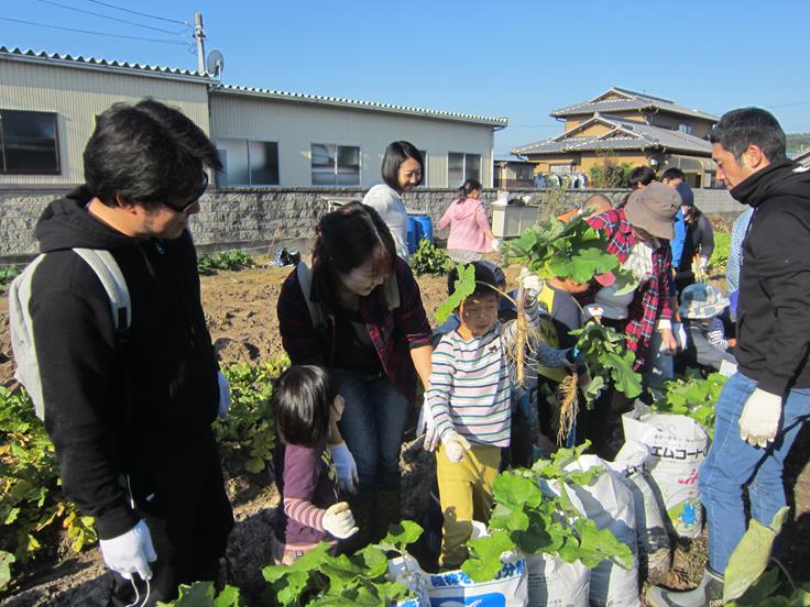 ☀その後、市民センター調理室に移動して、翌日の八郷フェスタでふるまう「八郷汁」のための野菜の下ごしらえを手伝っていただき、同時に、先日収穫したお米でおにぎりも作り、大試食会を行いました。