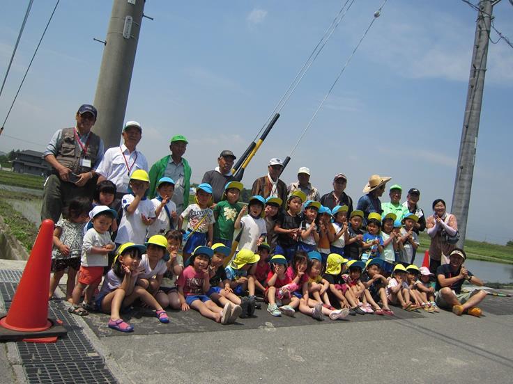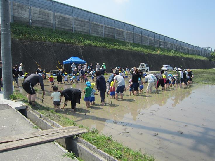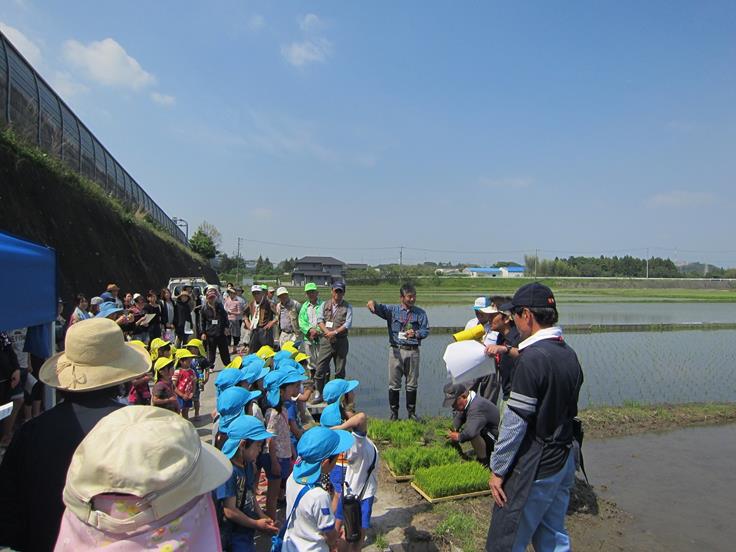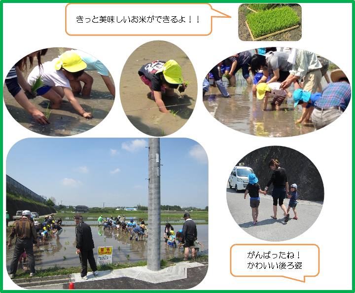 八郷中央幼稚園の皆さんとの田植えのお手伝いをしました。