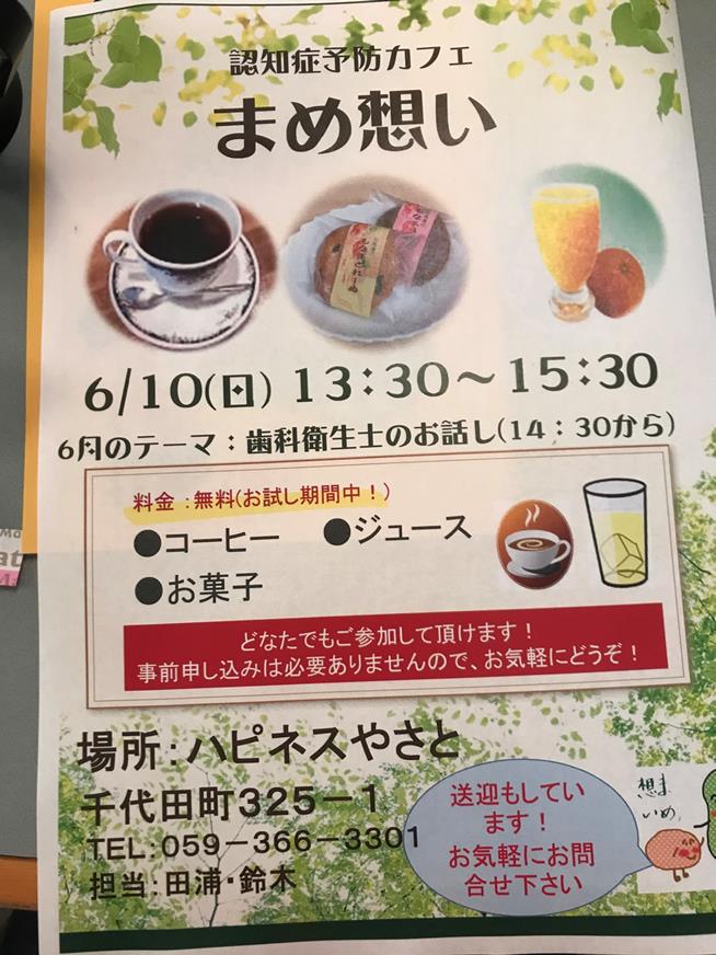 オープン初日の『まめ想い』に参加させていただきました。私たち民生児童委員は1階で楽しくおしゃべり、2階も満席、参加者の方々から楽しそうな声が響いていました。温かい「ハピネスやさと」さんの雰囲気が、このカフェの名称『まめ想い』にぴったりです。今後、地域の方々の楽しい交流の場に、このカフェが利用されていくと思います。みんなが、まめに暮らしていけますように。