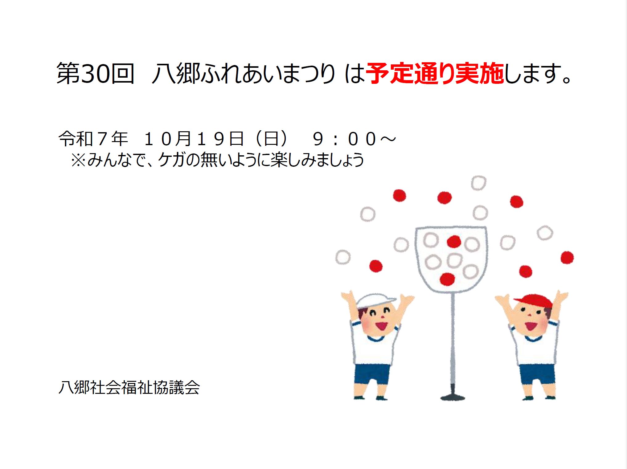 • 第30回八郷ふれあいまつりは予定通り実施します