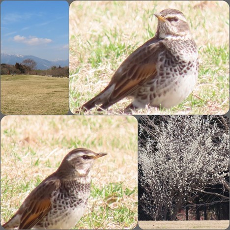 ツグミ(立春の2月4日、伊坂ダム湖畔の花壇付近にて)