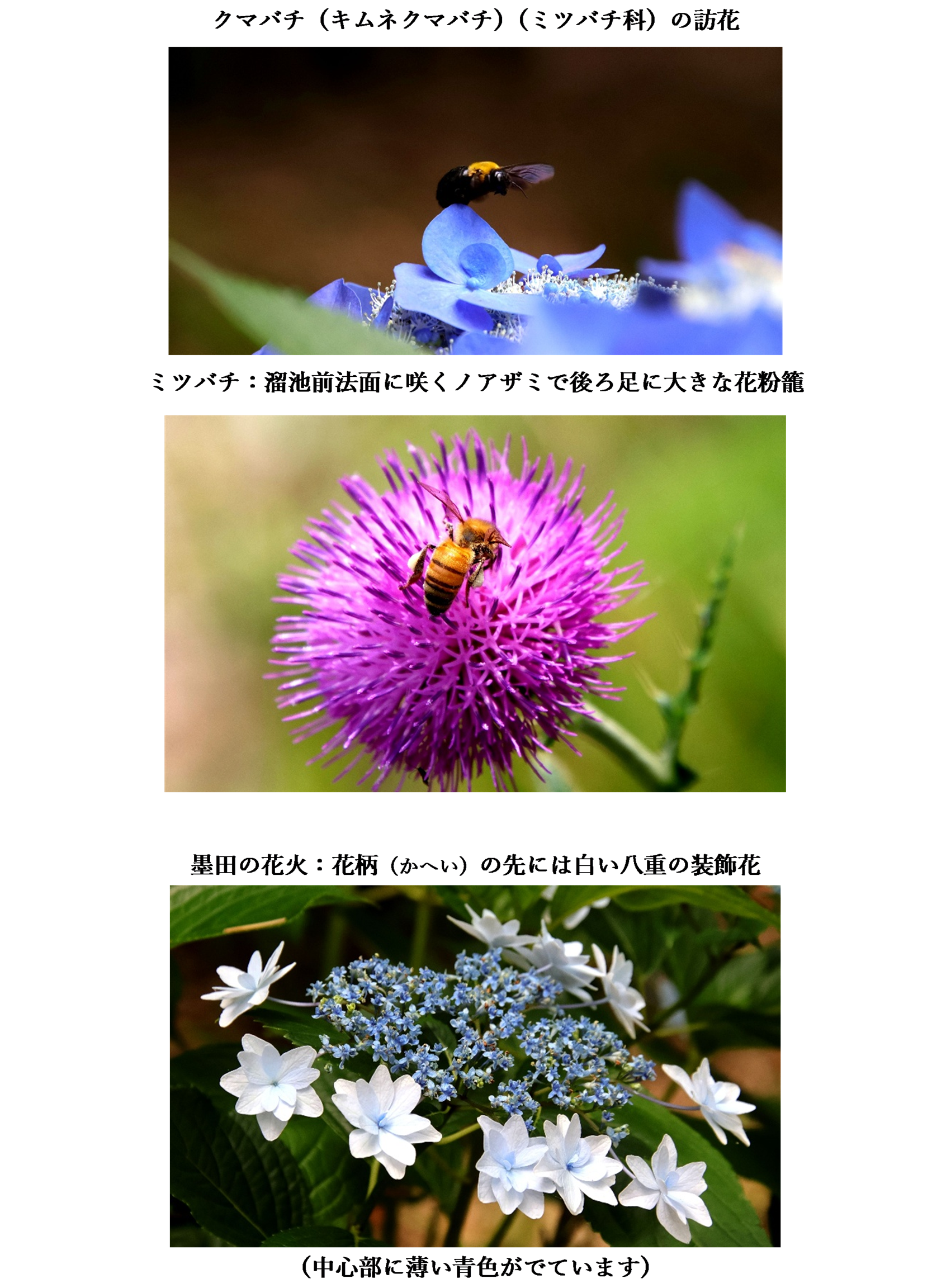 ■本文画像中のキーワード:#アジサイ ♯ガクアジサイ #伊坂ダム #溜池 #クマバチ