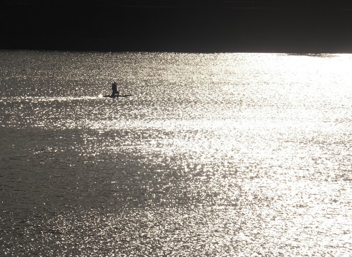 力強く沸き上がった積乱雲、夏を惜しむように湖面を滑るカヌー。