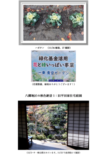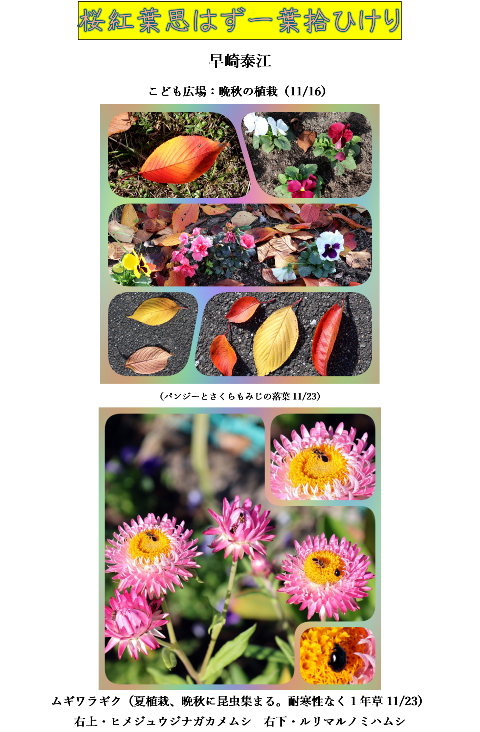 ■本文画像中のキーワード:#こども広場 #パンジービオラ #ムギワラギク #ヒメジュウジナガカメムシ #ルリマルノミハムシ #一東青空ガーデン #旧平田家住宅 #エノキ